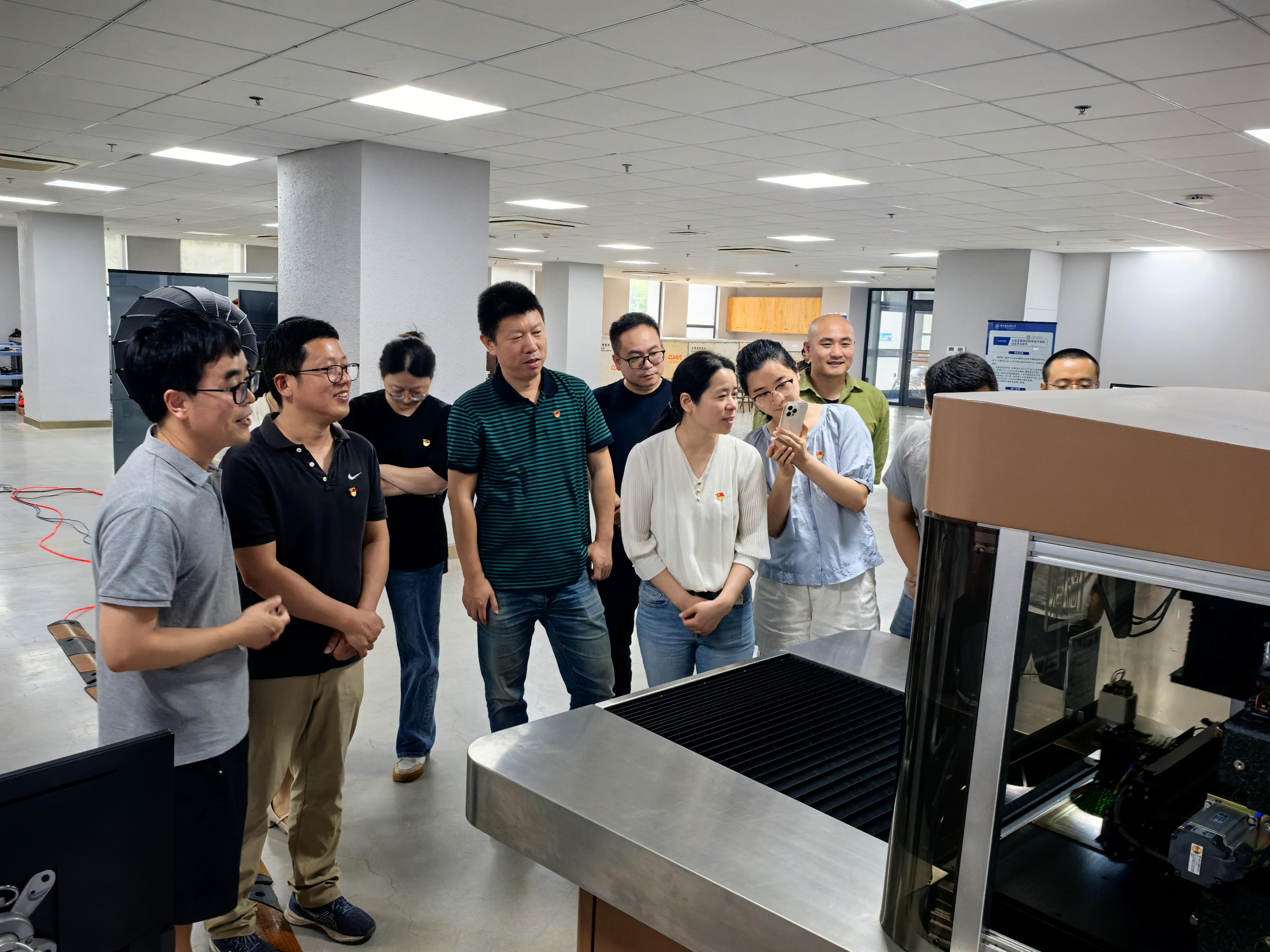随后,全体参会人员走访微电子研究院和计算机大仪中心,了解了学校前沿科研成果和先进仪器设备,围绕如何以党建为引领,共同推进基层党建和业务工作发展展开深入研讨。